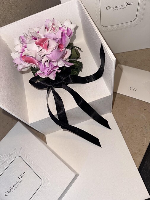 2026 年1月26日高級訂製時裝週首日,Jonathan Anderson 在巴黎羅丹美術館發表了他為Dior 打造的首場高訂系列。約七百三十位賓客都收到了一束粉色仙客來,以黑色緞帶繫起,以玻璃瓶裝,靜靜放在Dior的白色禮盒中。