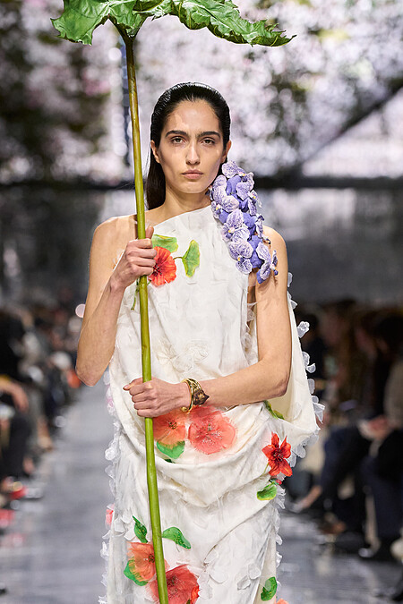 自然,成為貫穿整個系列的母題。不只是花的圖像,而是一整套關於生長、演化與變形的邏輯。Anderson 將高級訂製視為一個「活系統」。如同自然,沒有最終結論,只存在於不斷變形之中。