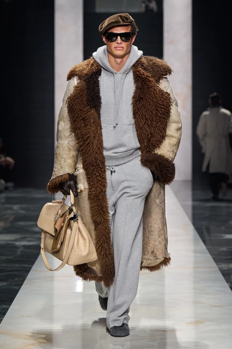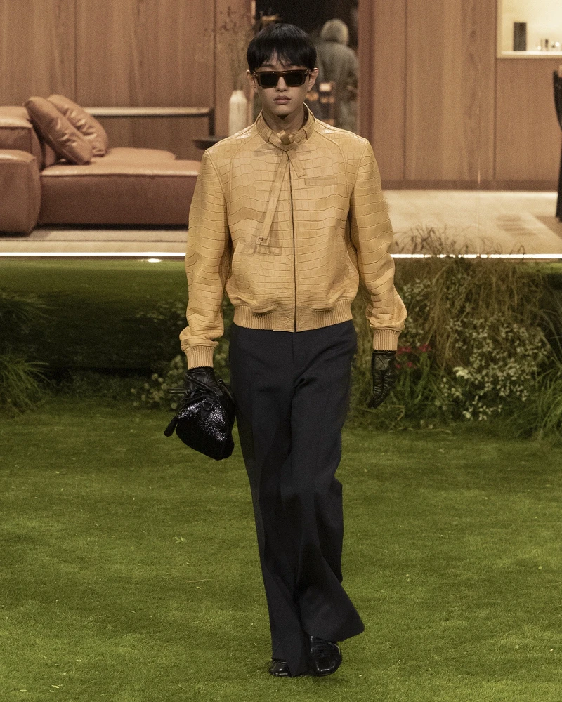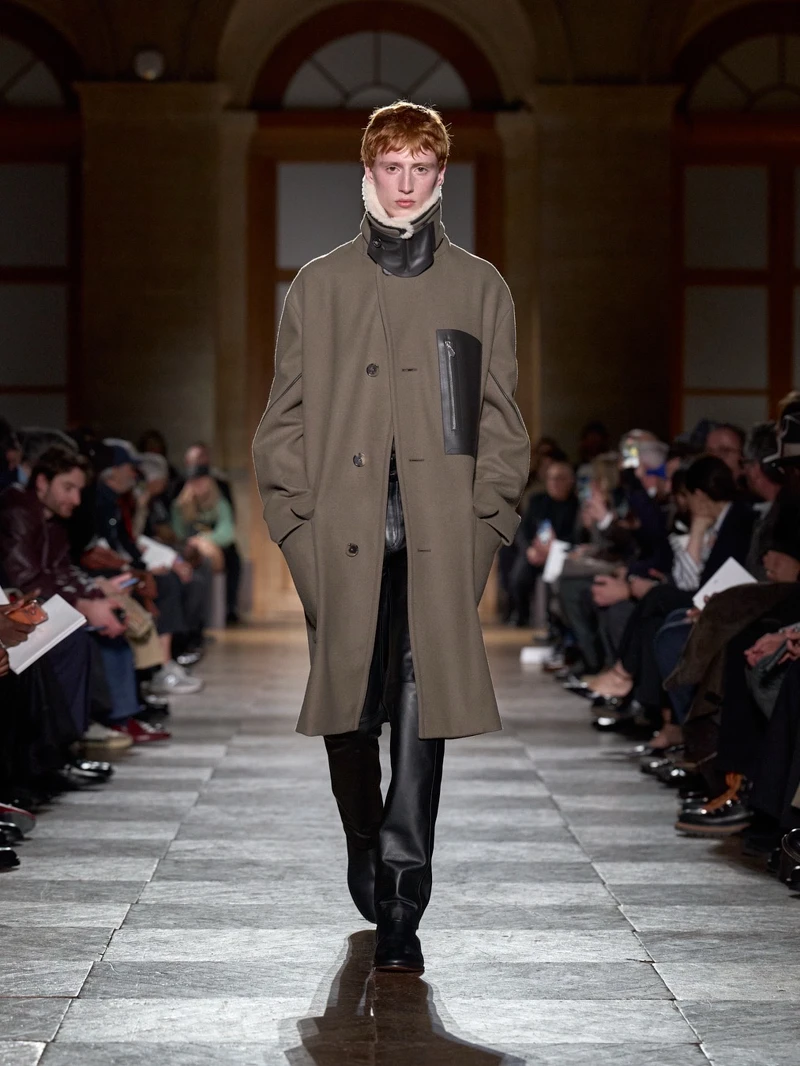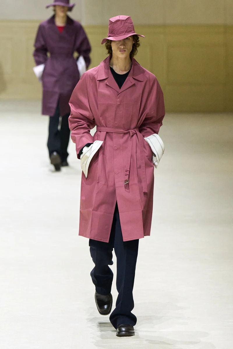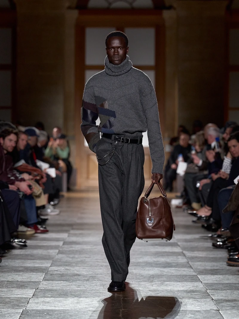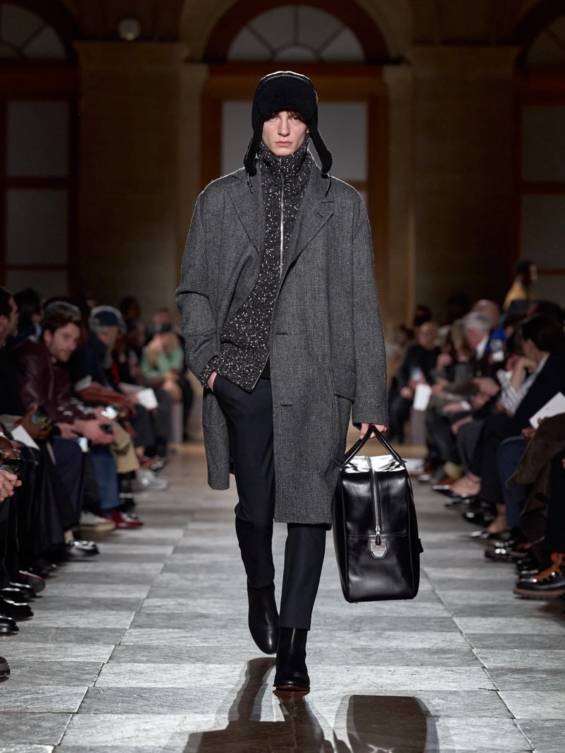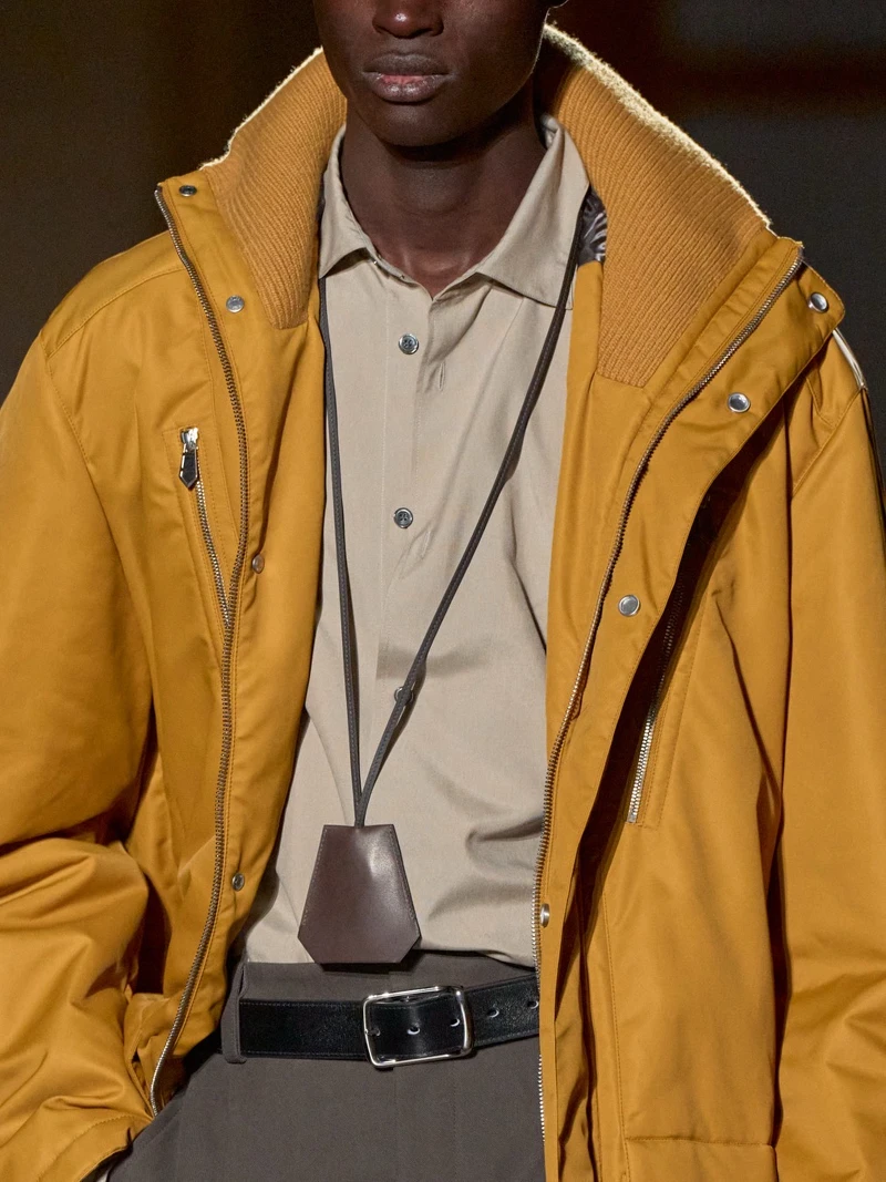 愛馬仕 2026 秋冬男裝系列,是藝術總監 Véronique Nichanian 的告別之作。本季共有59套造型,將經典男裝輪廓結合科技機能材質,回歸自在比例與精準結構。色彩以泥炭色、焦灰色、樹皮色與午夜藍鋪陳基調,橙色、落日色、孜然色與石英色偶爾出現,像穿搭中的小亮點,低調卻有記憶點。