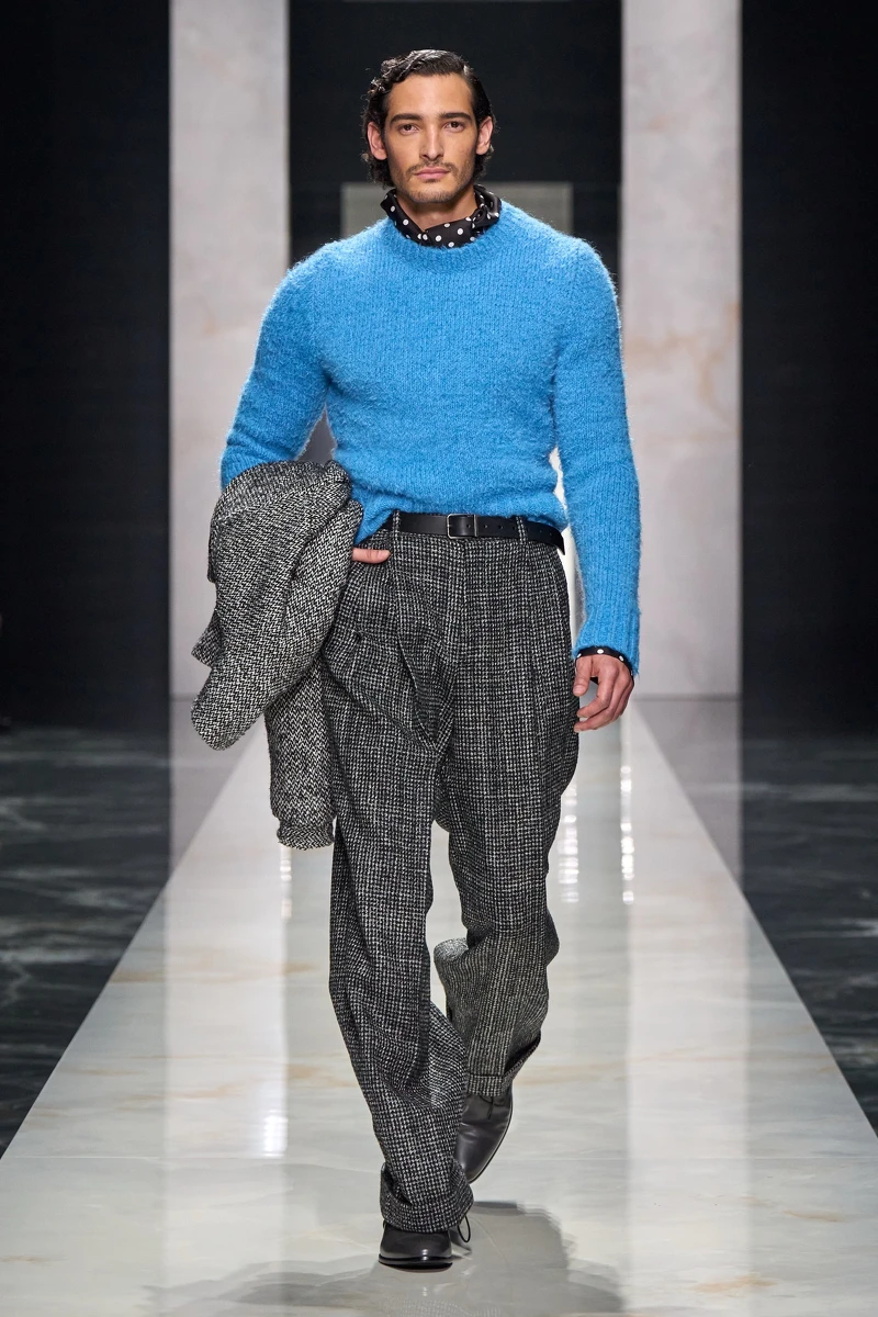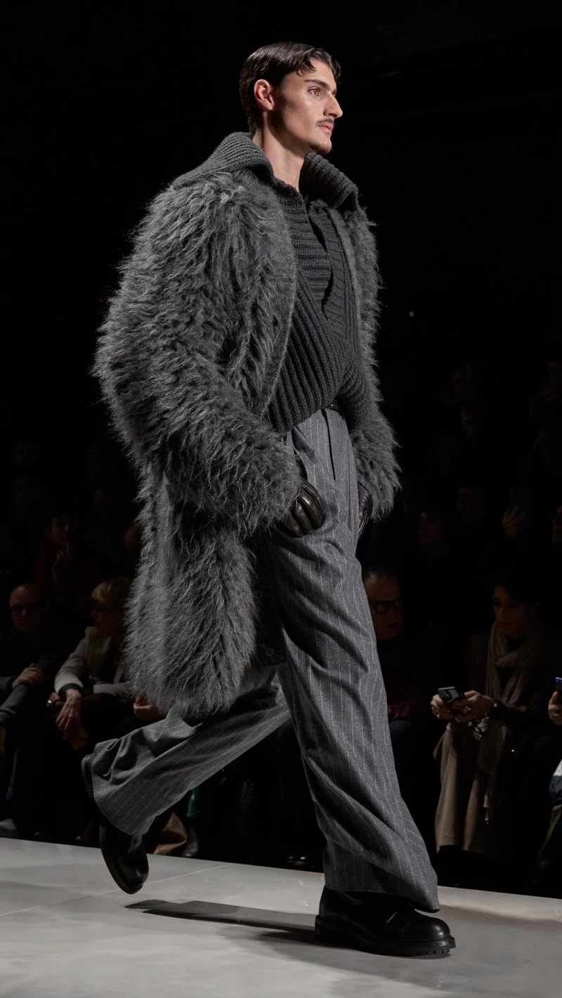 Dolce & Gabbana 2026秋冬男裝系列以「The Portrait of Man」為題,在米蘭譜寫一曲拒絕被定義的風格宣言。設計師將伸展台化作流動畫廊,以極致的義大利剪裁工藝,細膩勾勒出男性多樣的靈魂輪廓。男士可以穿得柔軟也能剛毅:銳利修身的經典西裝展現紳士氣場,與份量感十足的仿皮草、絲絨單品形成強烈對比,今天當商務人士、明天當貴族公子…同時也能是熱愛運動的自律者,擁抱每一種個人風格才能看見自己真實的本質。