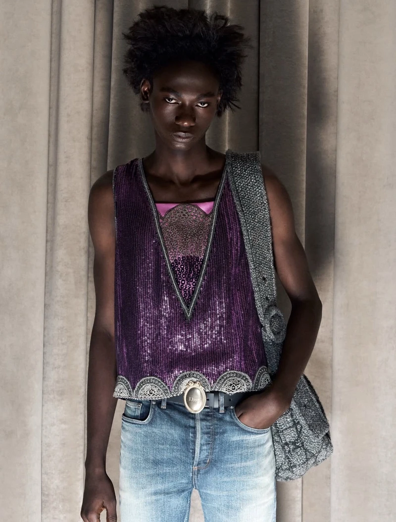 Jonathan Anderson的玩心始終不滅,將不僅從Paul Poiret的經典作品汲取靈感,與Dior的品牌標誌性風格結合,更用了十分叛逆的手法去致敬。本季由Guido Palau製作的金色假髮,便是從Paul Poiret愛用的彩色假髮概念出發,並改以激烈的龐克髮型呈現;模糊性別的裙褲設計亦是當時的創新之作;經典的建築輪廓服裝,則與街頭精神碰撞。