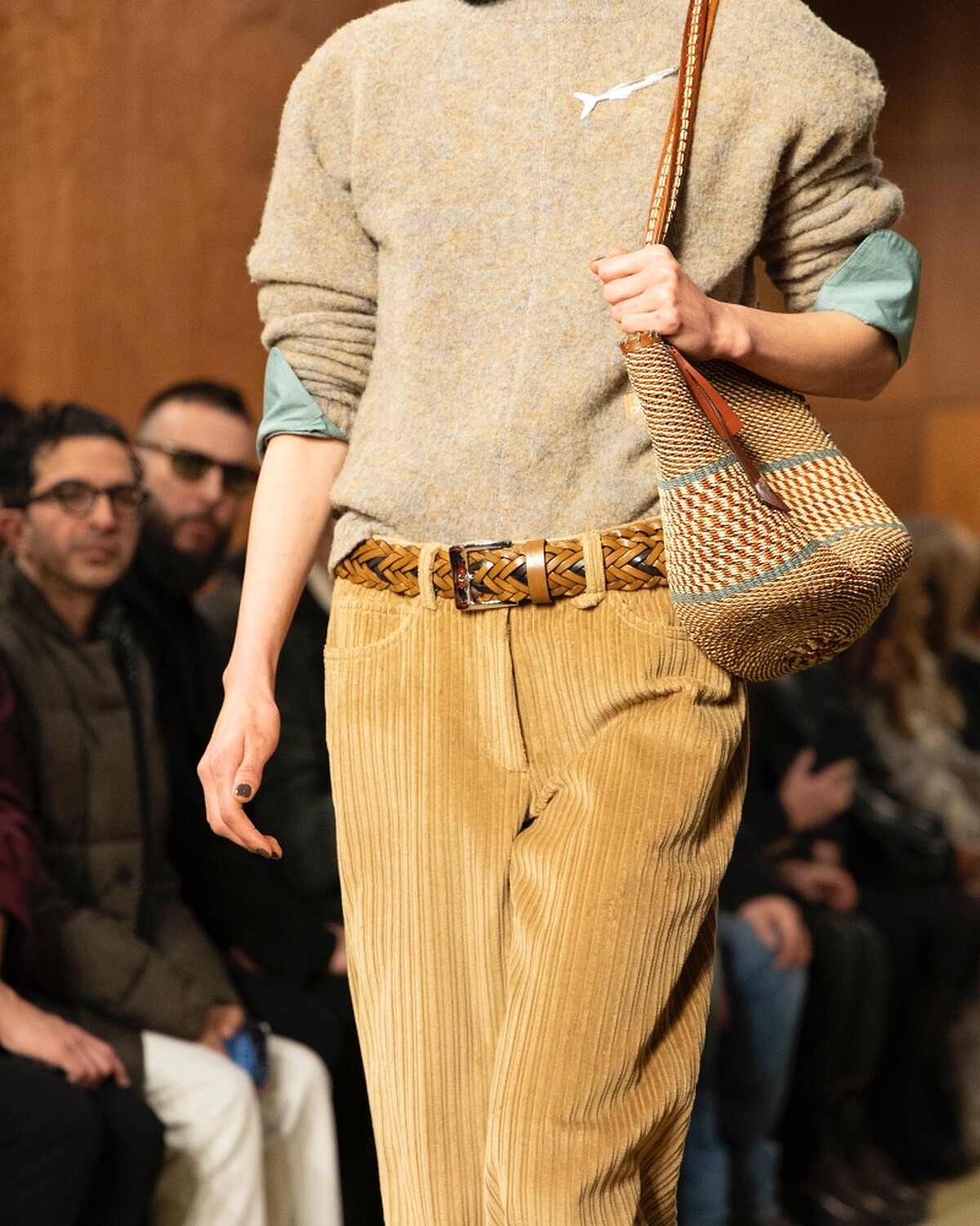 本季最具工藝含量的關鍵字是——Badla刺繡,這種帶有金屬光澤的金線刺繡,通過印度工匠手工完成,被運用在開襟衫與圓潤輪廓大衣上,無論是局部點綴或是全面的圖紋,都為整體加入奢華的立體層次,另外,設德蘭羊毛經刷毛與水洗後變得更輕盈,來自Tory Burch父親衣櫃中的燈芯絨,則在褲裝上以杏色與藏紅花色呈現,帶有懷舊氣息但不沉重。