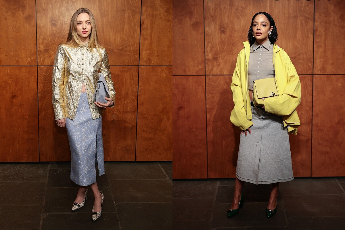 秀上的星光閃閃,不僅有品牌包袋及鞋履系列代言人宋雨琦穿上一身春夏水藍色洋裝搭配最新的Charlie手袋現身,還有Amanda Seyfried穿上春夏金屬絲光襯衫搭配金銀絲提緹花半裙,以及Tessa Thompson以鮮黃色的蠟感夾克亮相。