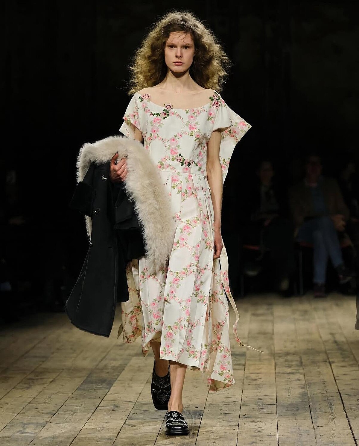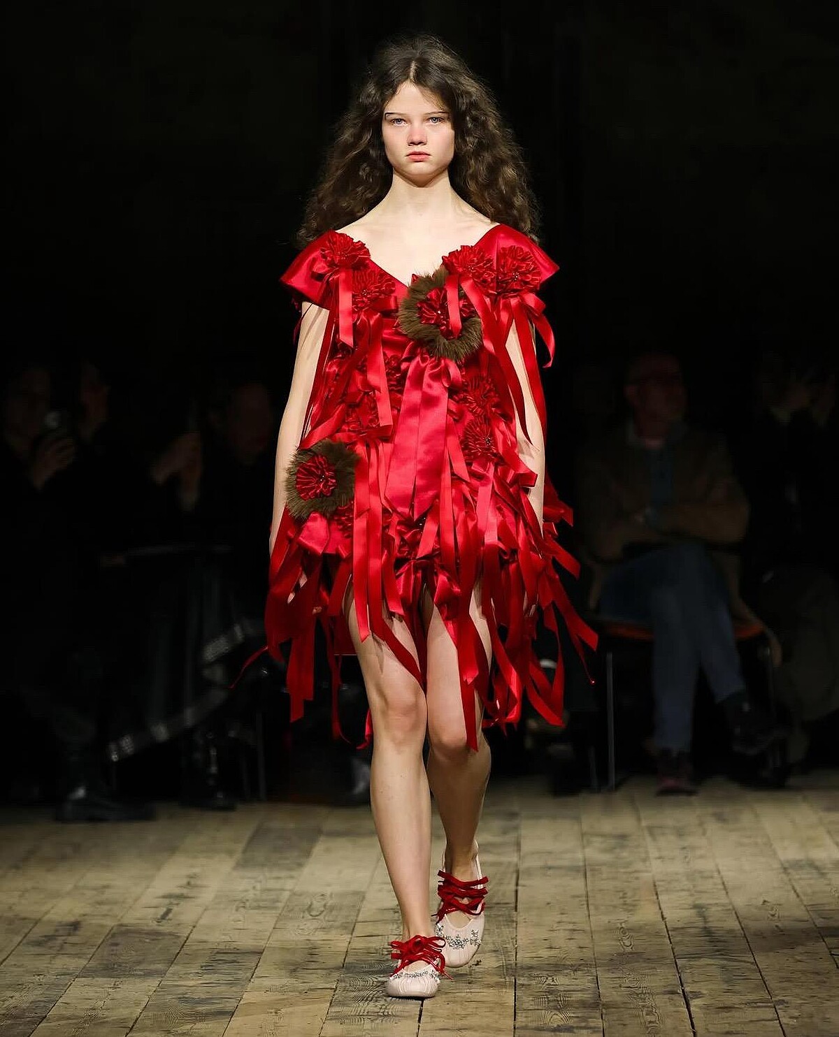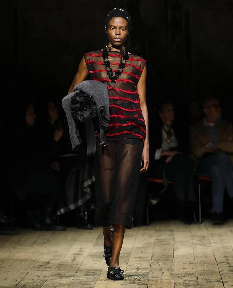 然而如此大規模的浪漫芭蕾運動風融合,卻絲毫沒有半點排斥反應,並且巧妙的與本季整體系列的主軸交織。Simone Rocha 2026秋冬系列從愛爾蘭神話、馬術傳統出發,並參考兩個經典作品Mike Newell 1992 年的電影《Into the West》以及 Perry Ogden 1999 年的攝影集《Pony Kids》,誕生由神話色彩與現實衝突的美學。