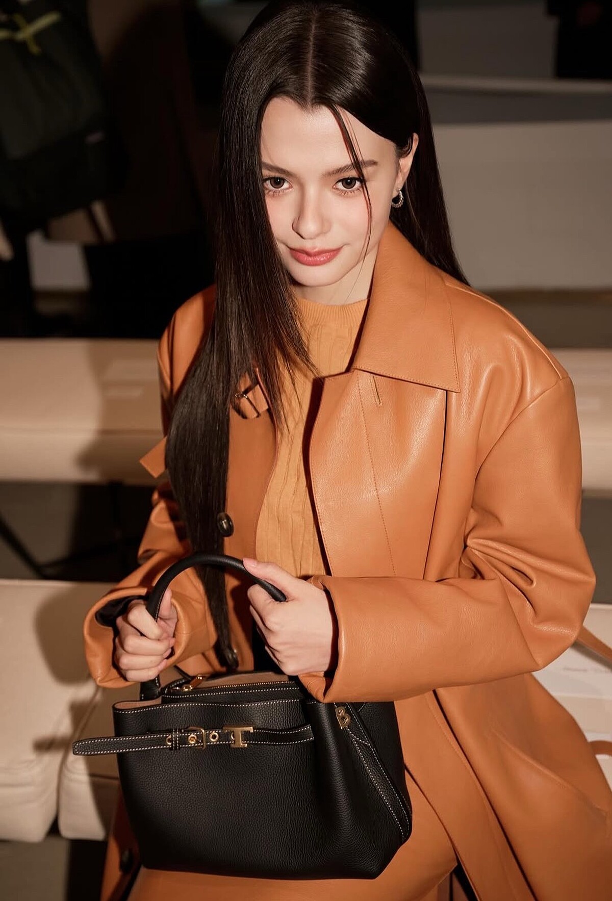 泰星Becky為本季的TOD’S大秀注入大量人氣,焦糖色的皮革大衣造型裡,是同色系的優雅套裝,流露溫暖的氛圍。