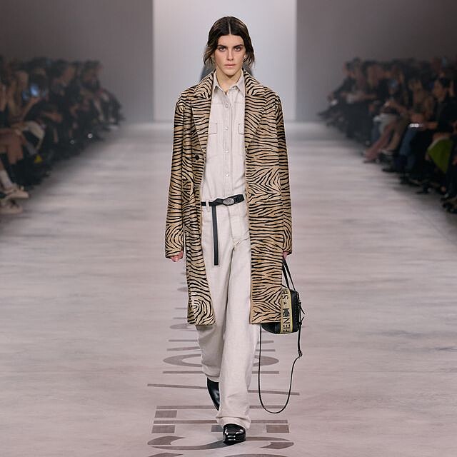 動物紋理延伸至成衣細節,營造層次與張力。剪裁方面融入實用口袋與柔軟結構,使奢華衣櫥更貼近日常生活。