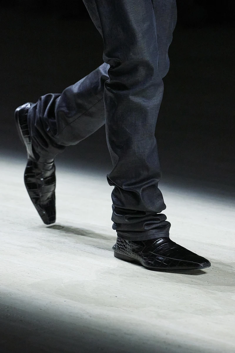 配件設計則回歸品牌經典並重新進化。Gucci Bamboo 1947 以更俐落的新體積亮相,搭配柔性拼接皮革製成的竹節提把,保留經典精神卻更貼近日常。館藏晚宴手拿包延展尺寸,可容納手機與必需品,兼顧造型與實用。鞋履方面,「Manhattan」運動鞋結合極簡籃球鞋輪廓與樂福鞋一腳穿的便利性;Giovanni 與 Cupertino 樂福鞋則以柔軟結構消解傳統皮鞋的僵硬框架,讓正式與休閒自然交會。