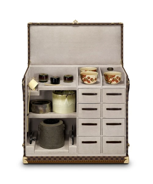 這回的展覽不僅位置上選擇路易威登日本的首店位置─千代田,他們更與日本有極大淵源。19世紀末,路易威登的兒子 George Vuitton 除了以「紋」(日語稱Mon,意為家徽)為靈感,設計 Monogram 帆布,第三代傳人 Gaston-Louis Vuitton 的興趣也是收藏刀鍔(武士刀刀身和握柄間的金屬片),皆與日本結下了不解之緣。日本也有許多特殊訂製箱,像是藝妓的化妝箱、茶道專家所訂製的茶藝箱等等。在藝術文化上,路易威登在過去與日本當代藝術家村上隆和草間彌生跨界合作的作品,至今仍讓人津津樂道。