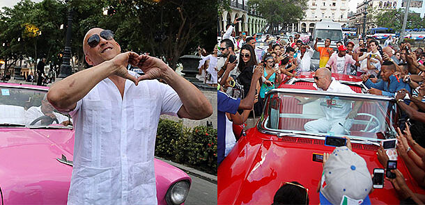 這不是拍電影,而是真真實實的古巴街景!在古董車滿街跑的古巴,之所以會造就這樣的文化,是來自於美國1962年對古巴實施的貿易禁運令,在無法進口的狀態下,70、80年代的古董車仍健壯地在古巴哈瓦那街道上馳騁,這項古巴專有的文化風貌,也成了CHANEL這次古巴大秀的亮點之一,從飯店到秀場的路上,CHANEL派出超過170台的彩色古董車接送媒體和嘉賓,繽紛又壯觀,不但成為成為這次大秀的新奇體驗,更吸睛的是,人正巧在古巴拍攝《玩命關頭8》的馮迪索也來到現場,近兩百台的古董車、人群簇擁,現場就像玩命關頭番外篇般熱血沸騰!