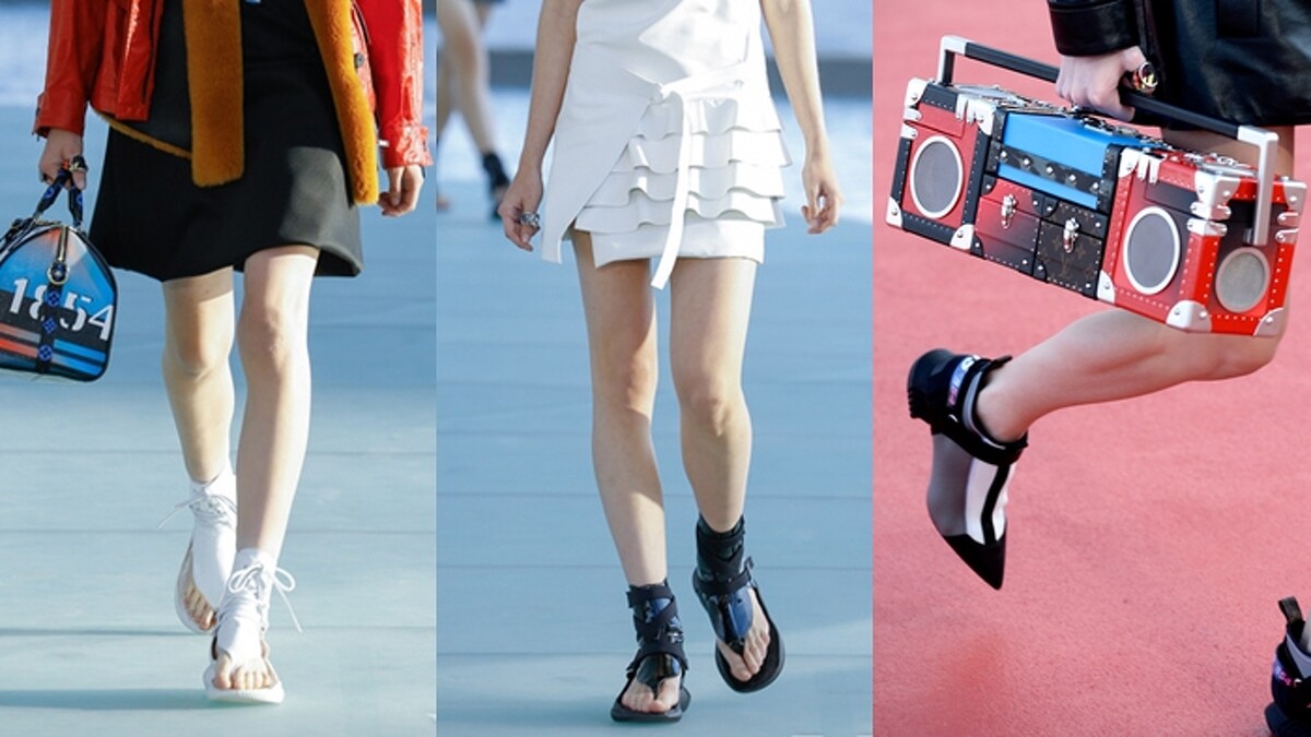 整場秀當中,最吸睛的莫過於model們腳上的高筒人字涼鞋,有點日式輪廓,又像是征戰未來的女戰士;而秀上也出現了一個音響包Boombox bag,帶著巴西的搖滾熱力,可愛極了!