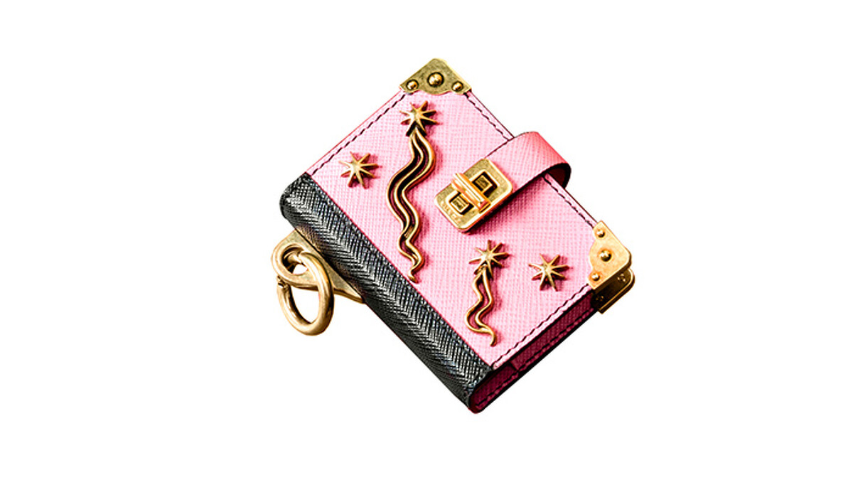 Prada 把筆記本縮小成了吊飾,可懸掛於皮帶或與女包搭配,打開後則是筆記本,時尚文青感滿點。