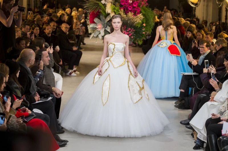 在 Viktor & Rolf 2017春夏高級訂製系列當中,這兩位設計奇才延續了前一季的理念,但這一回,大量的裙裝設計成為重要的主軸。顏色豐富的網紗材質被大量運用,而鏤空與拼貼的手法,則是運用零碎材料的必要手法。看似毫無章法的拼貼,似乎暗喻著在這個失序的年代,依舊能以創意拼湊出美好。這樣的一個高級訂製系列,與其說是一場精彩的時裝秀,其實更像 Viktor & Rolf 獻給當代的一則美好建言!