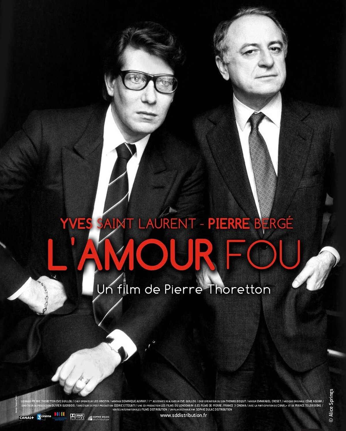 2011年在台上映的紀錄片《瘋狂的愛》,由Pierre Thoretton執導,以紀錄片形式誠懇真摯的呈現Yves Saint Laurent與同性愛侶皮耶.貝耳傑Pierre Bergé之間的過往點滴,以聖羅蘭過世之後,貝爾傑不忍睹物思人之痛,決定公開拍賣過往兩人共同收藏的藝術品為貫穿,影片中貝爾傑緩緩敘述兩人一生相愛與相處的過程,並曝光許多私人片段,呈現聖羅蘭鮮為人知的內心世界與兩人共度的數十歲月。