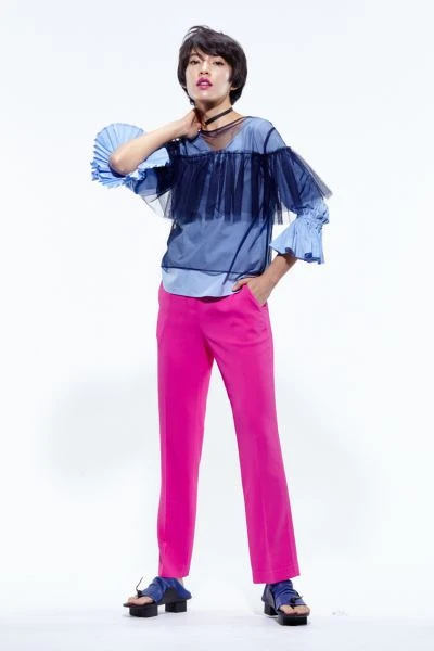 朦朧柔美的荷葉邊設計,以巧妙的色彩疊搭,呈現玩趣與風格的時髦新觀點!