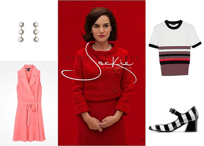 產後強勢回歸影壇的納塔莉.波曼,在最新一部作品中飾演傳奇人物前美國第一夫人賈桂琳.甘迺迪,被暱稱為 Jackie 的賈桂琳精通多國語言,擁有高貴優雅的氣質與時尚品味;精緻的包頭,弧度完美的捲度、及膝毛呢套裝與過膝羊毛裙、溫潤大方的 Cashmere 開襟外套,搭配高度適中的粗跟包鞋,最後再繫上滑順飄逸的絲巾,讓她成為六〇年代美國婦女爭相模仿的指標性人物。