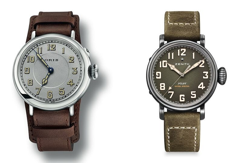 (右) Pilot Type 20 Extra Special 腕錶,直徑 40mm 仿古精鋼材質,自動機芯,Zenith。