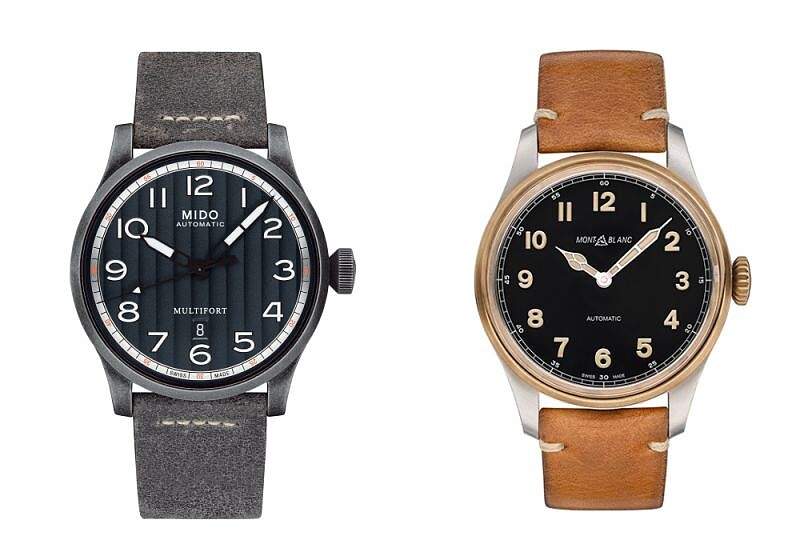 (左) Multifort Escape 先鋒系列 1947 復刻腕錶,直徑 44mm 仿古精鋼材質,自動機芯,Mido。