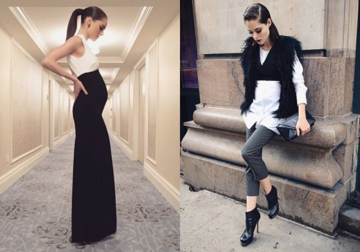 超模Coco Rocha即便有孕在身依然不減時尚魅力,反而多了一股專屬女性的韻味。運用基本的黑白兩色打造最經典的摩登都會造型,讓隆起的腹部自然地與服裝貼合,大方展現孕期的凹凸有致身型,梳起的髮型則讓整體顯得俐落有精神。