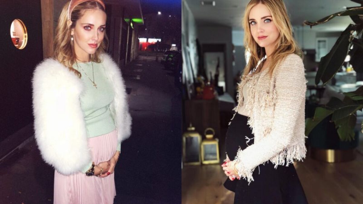 身穿貼合的針織衣物時不免顯出身形曲線,但儘管肚子因懷有身孕隆起,Chiara Ferragni依然可以運用具有份量感的罩衫,如毛絨或毛呢,巧妙地遮掩肚子。