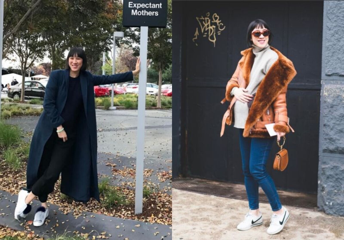 有著清新鮑伯頭和爽朗笑容的Instagram時尚總監Eva Chen,完全看不出來已經是兩個孩子的媽媽。孕期偏愛以休閒風格為主,將能夠掩蓋腹部的大衣外套作為首選,搭配上簡單舒適的上下身,最後踩上造型或是運動鞋款,帶出簡約的時髦風氣。