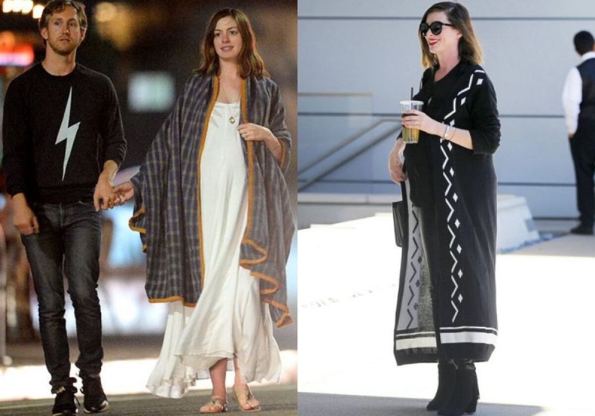 最後一位要介紹的就是笑容可掬的甜心女神Anne Hathaway!那173公分的高挑身形,即使是穿上罩衫式的長版針織外套也不會讓他顯得矮小,而隨著步伐和微風擺動的下擺,替懷孕時的擁腫感注入一絲絲的飄然氛圍。