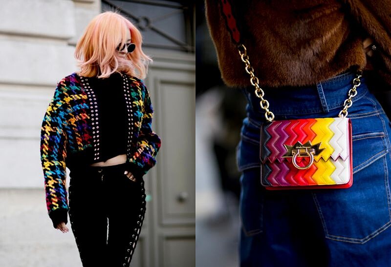 鋸齒狀的紋路為單調的造型注入了俏麗感,搭配上七彩的顏色,讓混搭上個性風格的裝扮更加時髦有型!