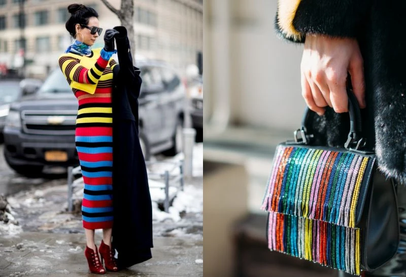 不分直條紋或是橫條紋,井然有序的排列隨著不同色彩飄散出俏皮的青春氣息,即便與黑色做為搭配,依然十分搶眼。