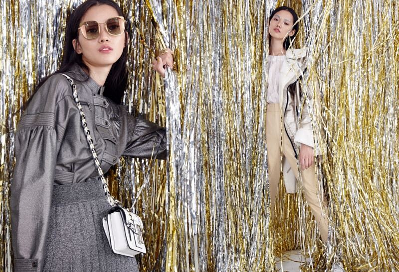 輪廓立體的服裝線條聯乘饒富趣味的派對包款,打造冬日女王的強大氣場!/百褶上漸變的金屬光澤在行走起伏間細細綻放流金歲月的美好。