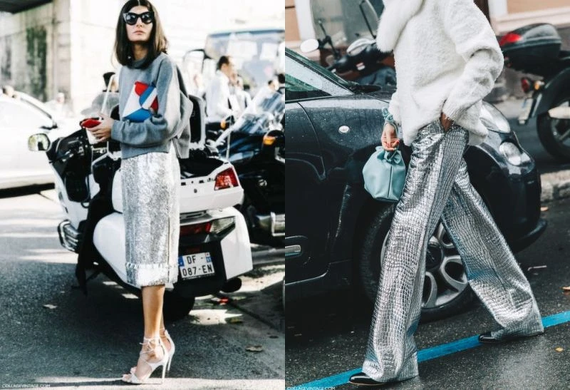 若是覺得金色太過張揚,別忘了還有冷色系的銀。在冷冽的天氣裡,厚實的毛衣勢必是賦予你溫暖的首選,造型上不仿試試星際銀的下身,讓那自然流洩出的光澤減輕厚重的視覺畫面。