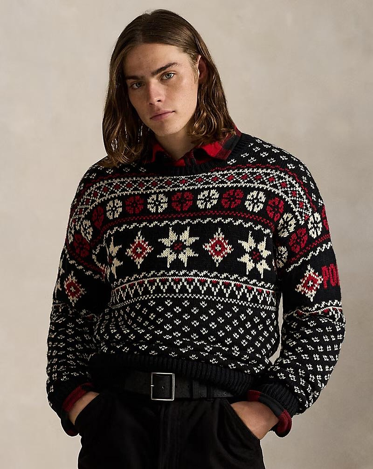 想要時髦一點的聖誕毛衣也不是不行!Ralph Lauren的毛衣單品中便有許多雪花圖騰設計的款式,在基礎色調中加入點亮眼的紅,在聖誕節穿再適合不過。