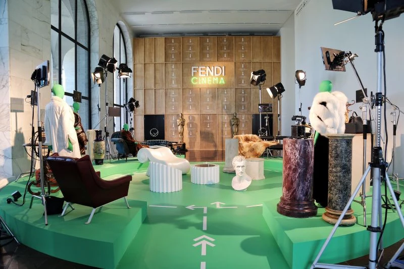 P.B.:這個展覽室希望能讓大家知道 Fendi 與電影是如何產生連結的,也可以觀看、進而尋找電影跟時尚裡的有趣之處,體驗作為電影明星的滋味。Fendi 其實跟電影有很真切的連結,當年卡爾與 Fendi 姐妹花就跟奧斯卡得主的義大利名導費里尼是至交,而費里尼導演與另一位奧斯卡金像獎最佳服裝的得主,當時常坐在一起拍片、吃義大利麵,不過只是流轉的片刻,電影就此在這個世界上變得越來越流行。在好萊塢都尚未成為主流時,義大利已是世界首都,Fendi 在當時就與電影同行,參與了電影製作、奧斯卡大獎,而這樣美麗的故事亦應該要被更多人知道。