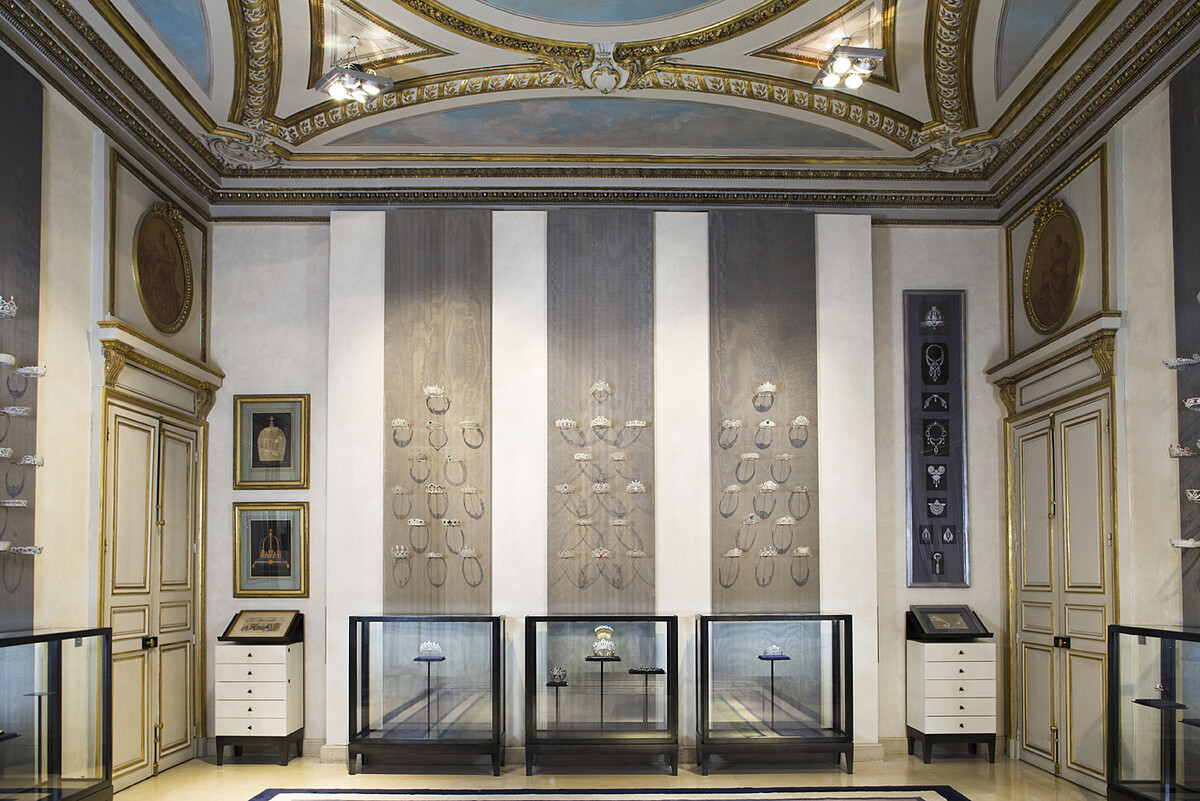 品牌歷史悠久的 Chaumet,不僅擁有許多重量級的顧客,如拿破崙與約瑟芬皇后,更是第一件進駐精品林立的巴黎凡登廣場的品牌。位於品牌旗艦店的二樓,正是 Chaumet 博物館的所在處。於1777年由路易十六王朝委託建築師 Belanger 設計裝潢,與建築師 Mansart 所打造的外牆相互呼應,盡現十八世紀風格美學。視覺感無限延伸的鏡廳,為空間帶來更多力道與氣勢,而在冠冕展廳中,展示著最能代表品牌精神的冠冕陳列。數以百計以鎳銀製作的冠冕模型,被懸掛在牆面上,輕重之間,承載著逾百年的極致與奢華!