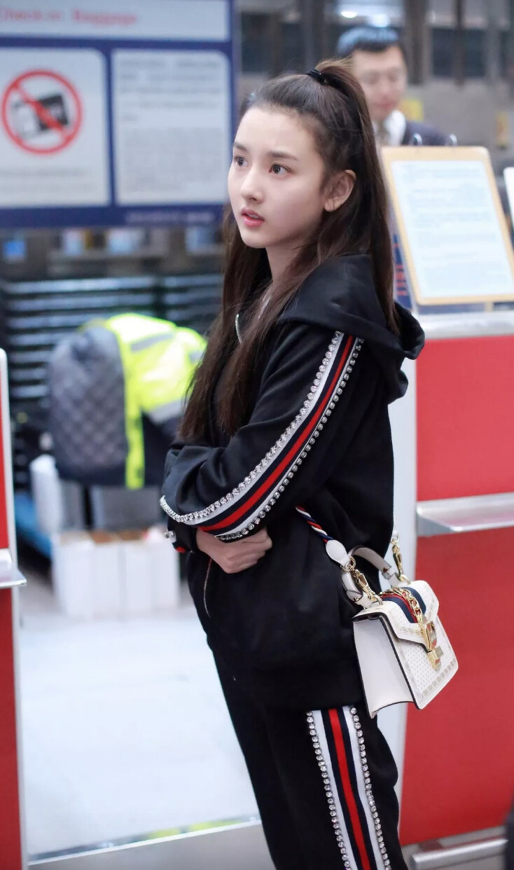 黑色運動側條紋套裝+白色Sylvie系列手袋,宋祖儿演繹精緻復古運動風。