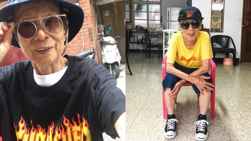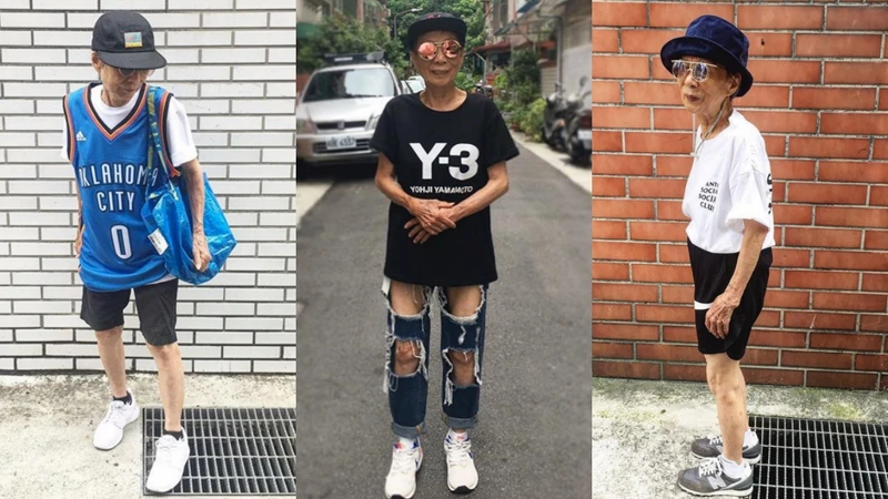 林莊月里是台灣潮牌 A.L.T 創辦人的奶奶,Moon Lin 平常擅長的是街頭潮流風格,將潮流精品和運動品牌穿出超逆齡的街頭態度!不管是備受潮流人士喜愛的 Supreme 還是先前出了快遞公司 DHL Logo T-Shirt 引發話題的 Vetements,穿到對 Oversize 和大 Logo 單品情有獨鍾的 Moon Lin 的身上都顯得毫不違和。