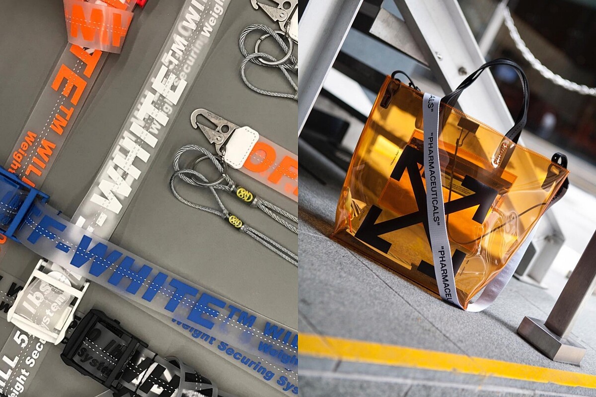 除了這些透視款的聯名系列,Off-White在今年春夏的男裝系列上也紛紛堆出了不少以PVC為主材設計的單品,像是工業感的腰帶以及手提肩背包,都在Virgil Abloh別具一格的審美視角下,將那些時常出現在工地裡的警示標誌幻化為最潮配飾,帶出強烈的視覺效果。