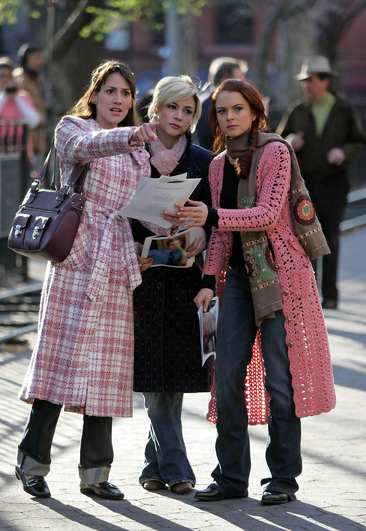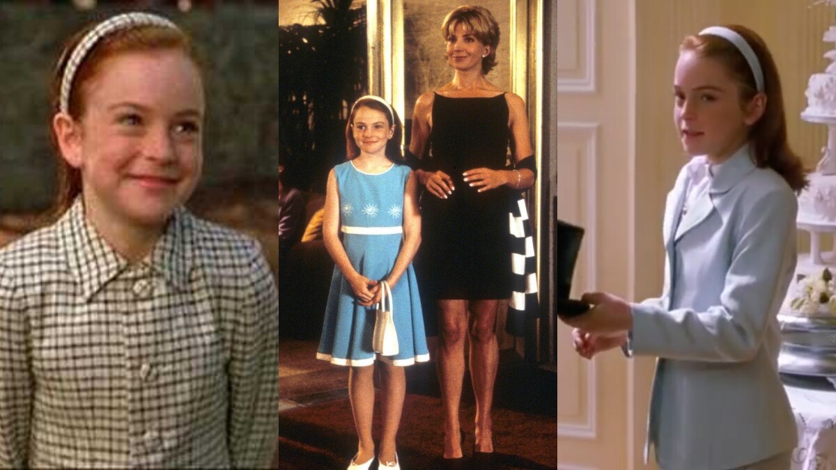 扮演荷莉的安妮以率性的拉鍊圓領夾克搭配褲子,帶出中性的態度,相反的,扮演安妮的荷莉則以針織羅紋套裝搭配同色系頭箍,顯現端莊的一面。