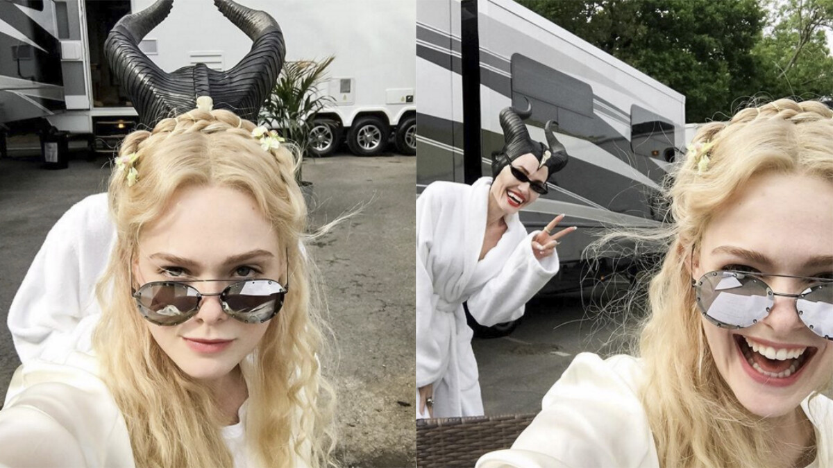 就在先前不久,Elle Fanning於個人IG上分享了兩張與Angelina Jolie俏皮的合影,從Angelina Jolie頭上的長羊角,就可知道《黑魔女2》已經悄悄正式開拍了!儘管兩人都披上了浴袍,但窄身的墨鏡和鉚釘飾邊的鏡面墨鏡讓兩人依然時髦有型。