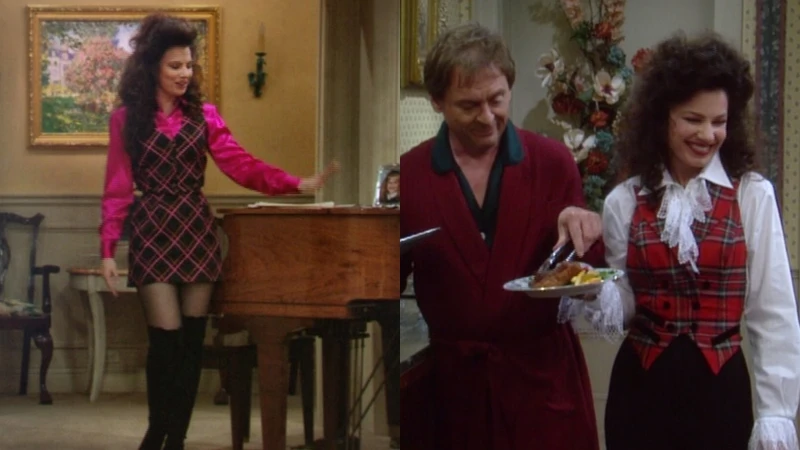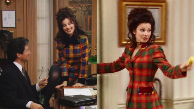 印花:然而搭配的印花種類則是多到你數不清,除了從60年代開始興起的藝術普普風,還有象徵著90年代的格紋和塗鴉…多樣的選擇豐富了Fran Fine幽默又熱情的性格。