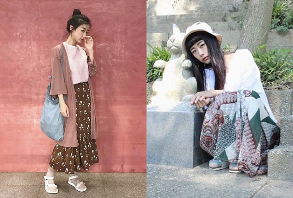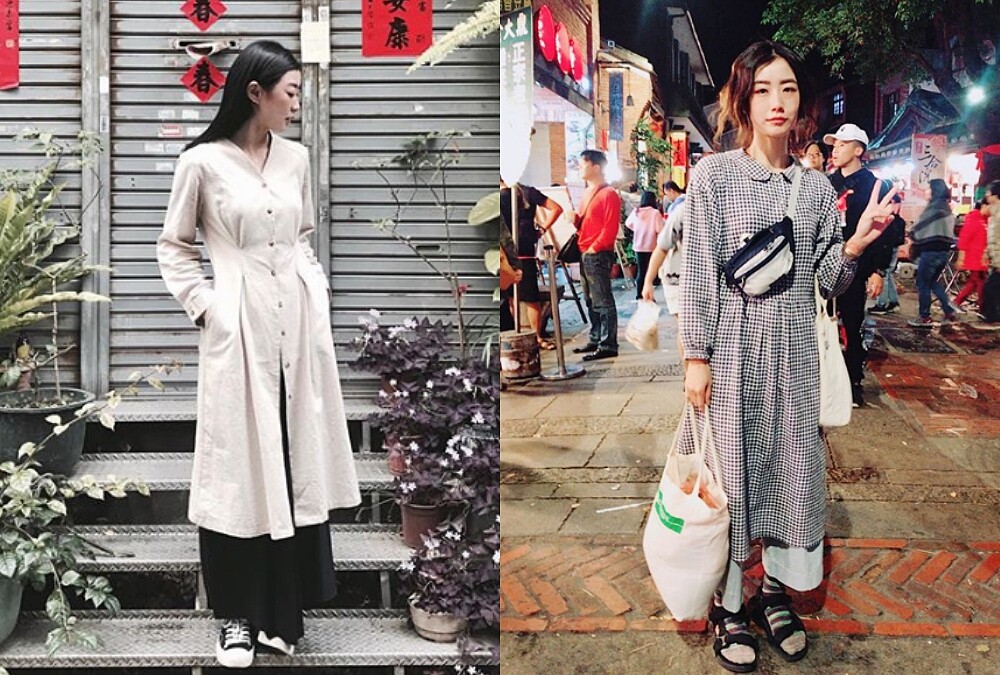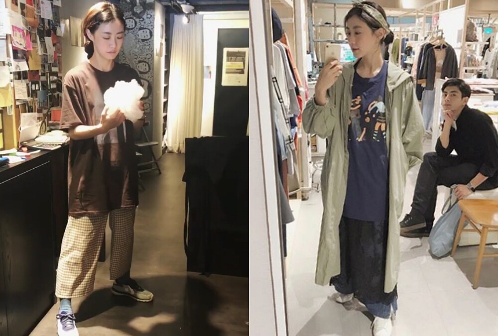 此外,女性化的洋裝和男性化的直筒寬褲也經常出現在翁嘉薇的日常造型中,但特別的是翁嘉薇會將兩者混合穿搭,塑造佛系女孩專屬的柔中帶剛造型,仔細回想,其實僧侶也會將覆蓋至臀部長度的上衣與寬鬆褲做為搭配呢。