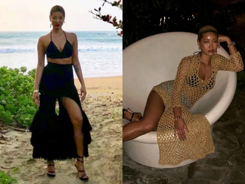 儘管是出遊至海島國家,Yoon Ahn依然酷帥有型!以高開岔剪裁和層疊而成的浪漫褲擺與比基尼做為混搭,塑造熱情洋溢的性感裝扮,又或是編織網洋裝,替比基尼罩上一層魅惑氛圍。