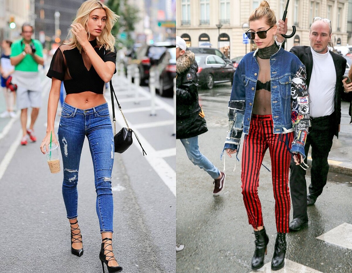 短板Tee也是Hailey Baldwin的熱愛款,尤其是擁有一身好腹肌的Hailey Baldwin穿起來更是迷人!但若是比較害羞的話,也能選擇將當今歐美流行的Bodysuit穿於內層,色彩上只要選擇相近色或同色調,就能避開衝突感。