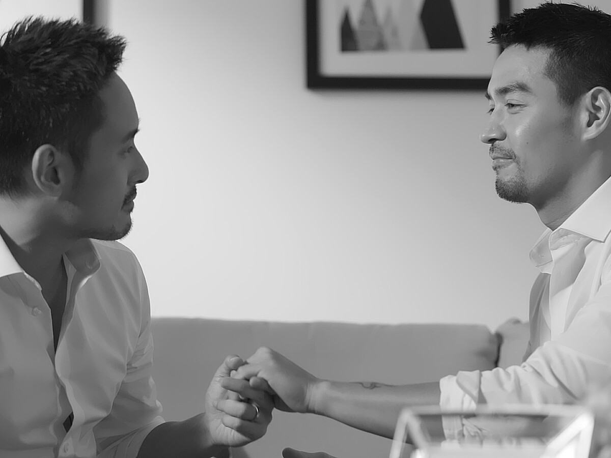 誰說愛情長跑到最後會消失火花?倆人對看時眼神依舊電波流轉,三不五時嘴對嘴親一下也是日常習慣。Terry想對Kin說,「寶貝,謝謝你這十年來的陪伴,也謝謝你跟我求婚,有你帶我用另一個角度看這個世界,很幸福。」Kin則珍惜著表示,「其實我們個性不同,經歷過很多磨合卻不輕易放棄難得的緣分,他很理性我很感性。一個好朋友曾跟我說過,他祝福我們一直擁有討厭彼此跟喜歡彼此的能力,因為這樣我們才有割捨不斷的羈絆,彼此可以就這樣一直一直走下去。」就像正負兩極的吸引力,珍視且緊密的結伴在人生旅途上,讓求婚時的感動與悸動一直存在,彼此牽著手、放著閃直到老去。