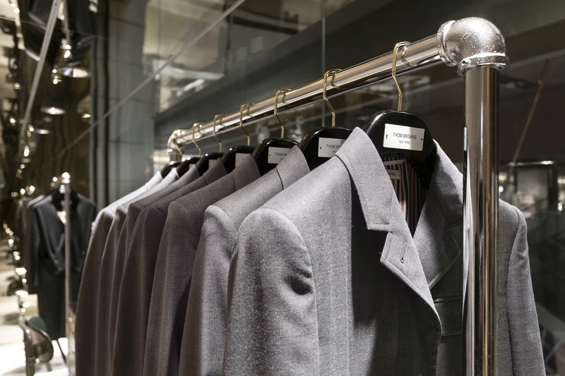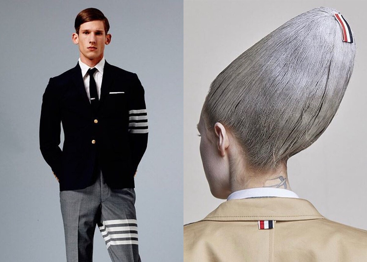Thom Browne在2001年創立同名品牌Thom Browne,主打男士打造極具特色的精緻男裝。他曾經在洛杉磯當過演員,就在那個時候他開始做實驗,將古著西裝洗過之後丟進烘衣機,再將西裝長度截短,這就是他日後的著名的微皺西裝的原型。他的風格例落、帶著一點雅痞,以合身、較短的版型和精緻的做工著名。經常看到的就是他貼身並且露出腳踝的窄管八分褲、略短的西裝外套,標誌性的藍白紅三色裝飾或是四條橫槓的logo,一看就知道是Thom Browne。