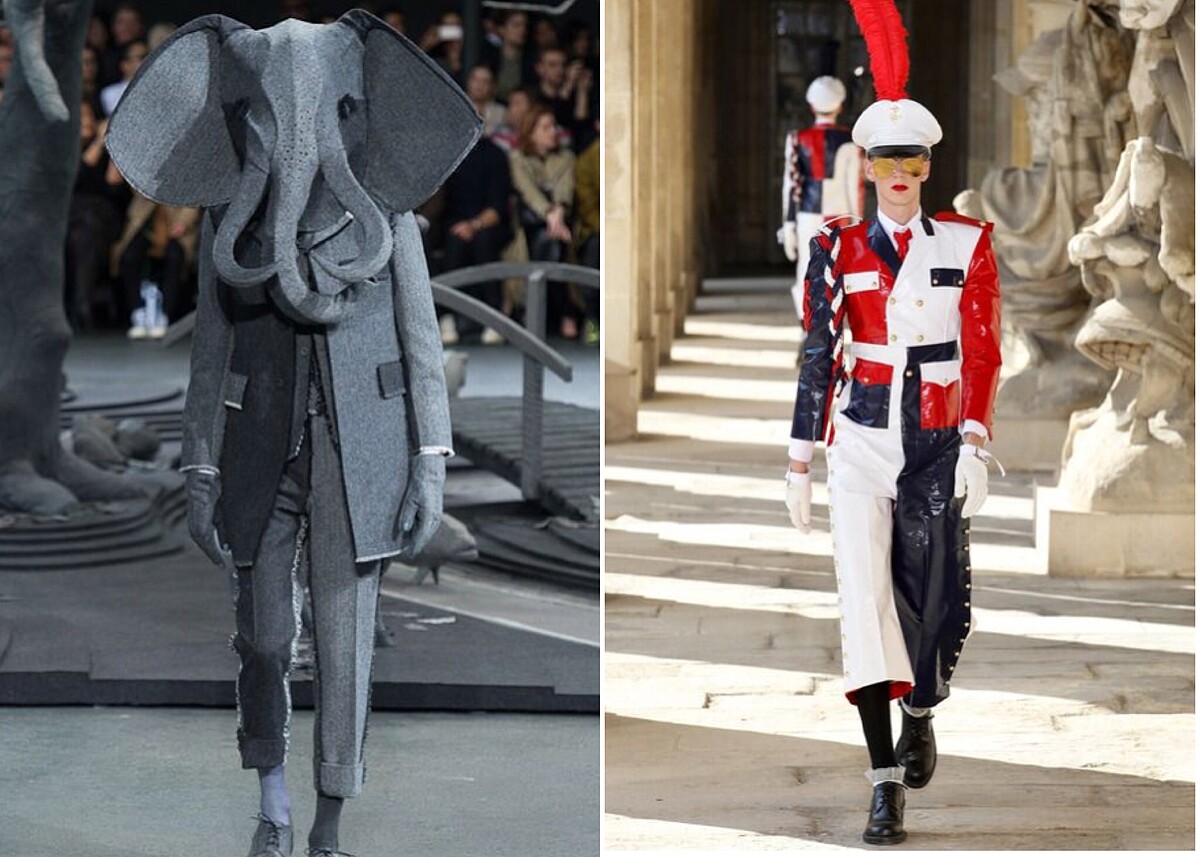 Thom Browne的每一場秀都創意十足,幽默、華麗、充滿戲劇性、有時候還會有些突兀荒謬,例如將秀場變成50年代的復古辦公室、男模全部變成衛兵、帶著動物頭套的走秀等出其不意的想法,總能在每一季帶給觀眾們前所未有的驚奇。
