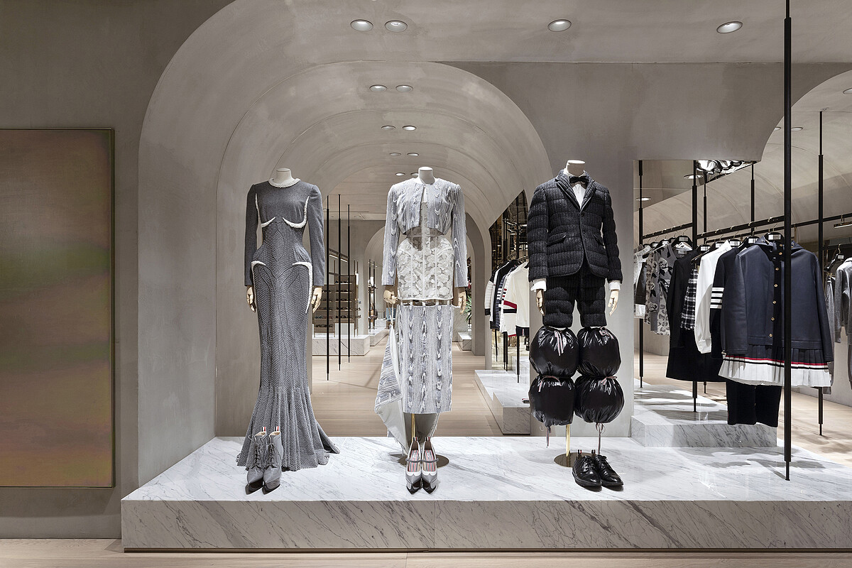 瘋狂中帶有冷靜節制向來是時裝迷喜愛Thom Browne的原因,店內展出的女裝秀款,近距離地呈現高度華麗的垂墜皺褶與細膩的立體剪裁,讓人看的大呼過癮。