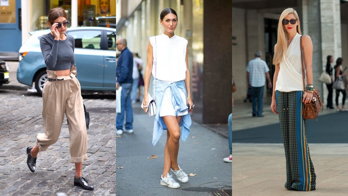 然而除了以寬鬆衣物遮掩,其實高腰版型的下身也能把肚子上的肉給藏起來喔!或是將外套繫於腰上,甚至層次感設計..都悄悄地隱藏了肚子上的游泳圈。