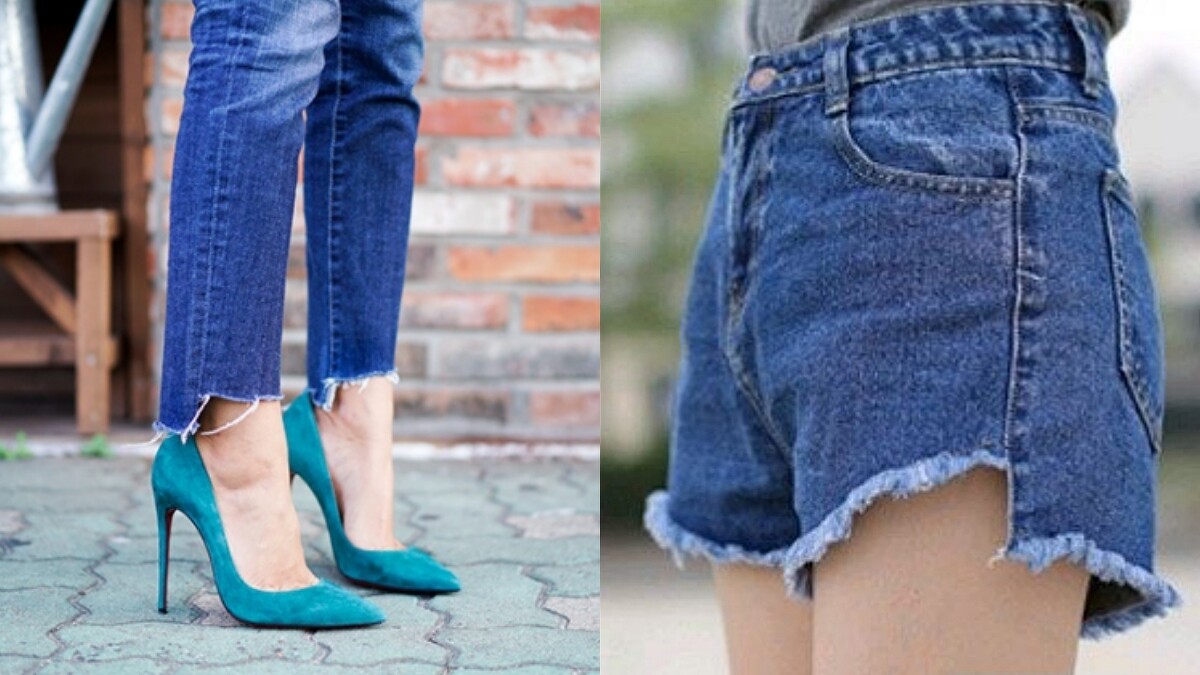 許多蜜大腿的女孩都會抗拒穿上短褲,但只要選擇褲長蓋過大腿最粗部位的長度,就能巧妙遮藏大腿到屁股的肉。而如果是只有大腿內側較肉的話,則可選擇褲管呈V形的剪裁。 此外,摺起一摺或是不收邊的鬚線皆是顯瘦的障眼巧思!
