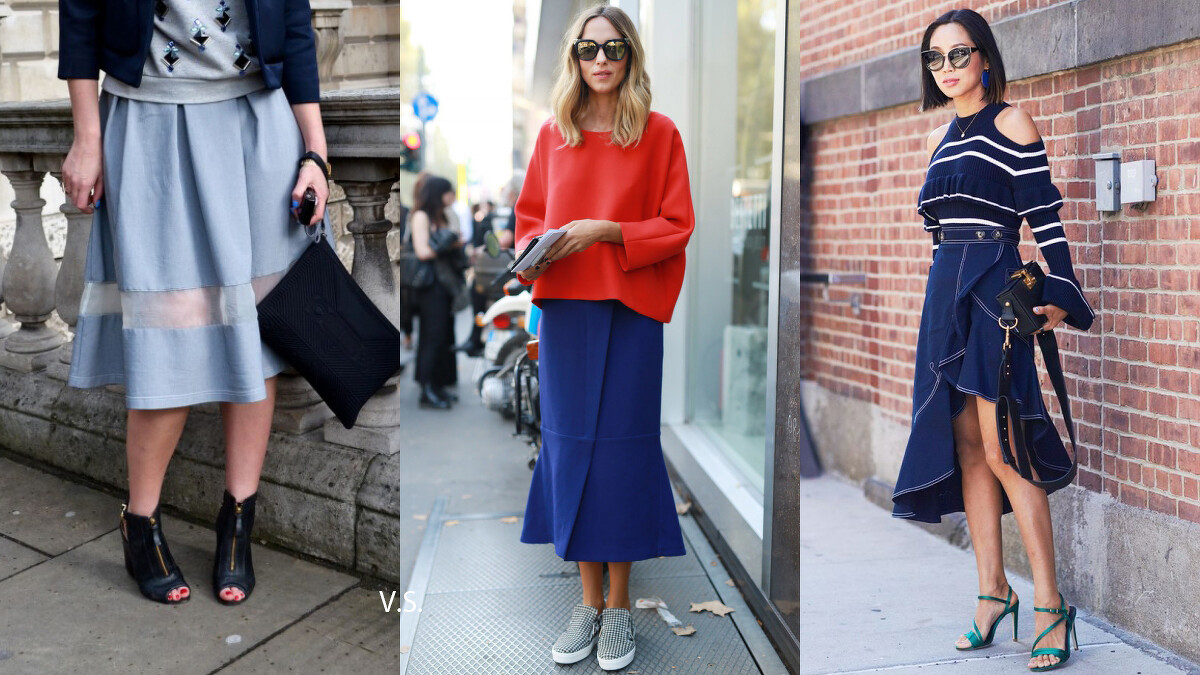面對擾人的小腿肌,除了平常積極做抬腿按摩,也能靠穿搭來修飾呦!許多女孩認為裙子是最快速又輕鬆遮藏小腿肌的單品,雖然這麼說沒錯,但編發現很多在意小腿肌的女孩在挑選時都會忘記考量到裙子的長度,舉例來說,若裙擺長度剛好落在小腿最粗的地方,那麼不僅失去了遮藏功效,反而會讓小腿更顯壯碩,所以裙擺長度應該選擇落在腳踝之上、小腿肌之下的區域範圍。此外,開岔或是不規則剪裁的也具有修飾的障眼效果喔!