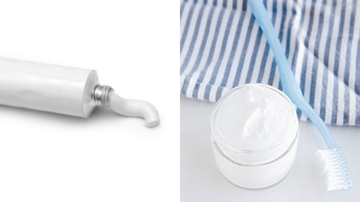 如果是油漬的話則可將少許牙膏混合上洗衣粉,並輕輕以牙刷反覆在污漬處刷洗,這樣擾人的油漬就會被消滅了(但不建議使用含有色的清潔顆粒牙膏,以防止染色的可能)。