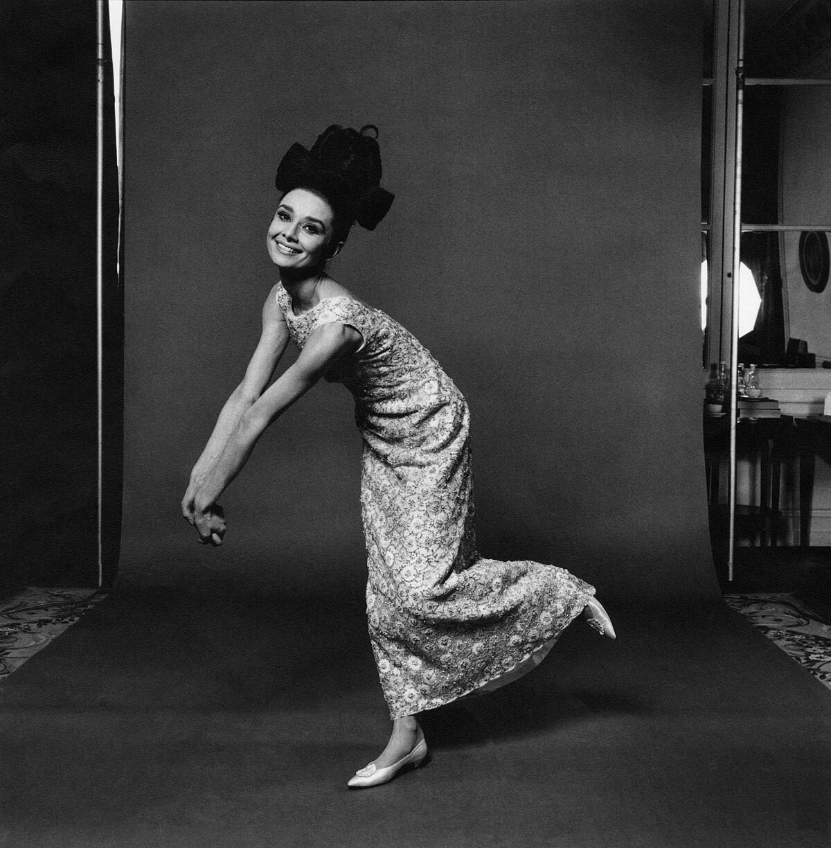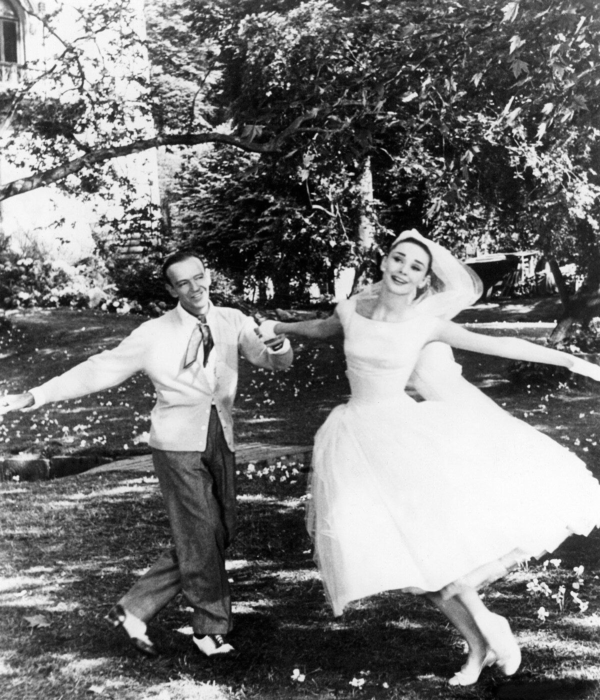 (1957年電影《甜姐兒(Funny Face)》劇照。畫面中 Audrey Hepburn 身穿 Givenchy 連身裙,與電影演員 Fred Astaire 合影。而 Hepburn 禮服的領口設計,也為哈利王子夫人 Meghan Markle 的婚紗帶來啟發。)